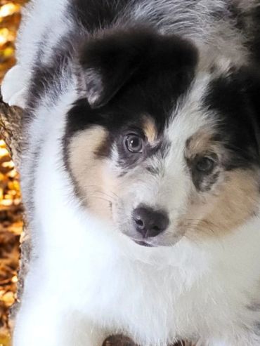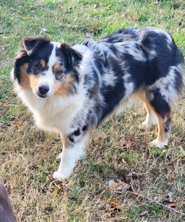Josie is blue merle with soft brown eyes and a wonderful expression. She has a sweet easy going temperament and gets along with all her friends.